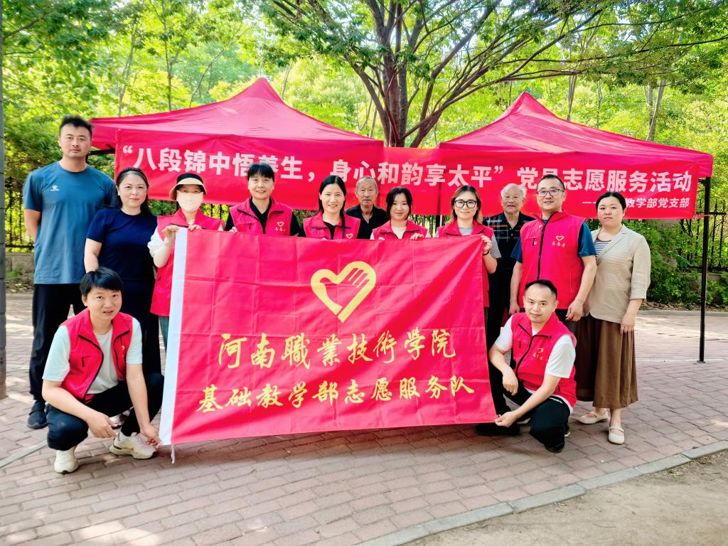 为深化党建引领作用,推动健康生活方式深入基层,近日,yl6809永利官网集团党支部组织20名党员志愿者,在河职佳苑社区成功举办了主题鲜明、内容丰富的“八段锦中悟养生 身心和韵享太平”党心暖社区志愿服务活动。活动由党支部书记周翠英亲自带队,吸引了约50余名社区群众热情参与,共同体验传统养生功法的魅力。
