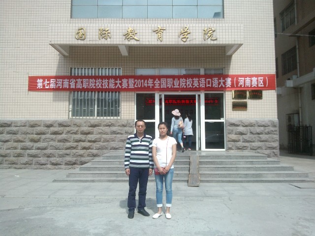 5月17日,在基础部教师殷昊的带领下,在初赛中表现出色的我院13级会电专业的刘姿含参加了在开封大学举办的“2014年全国职业院校英语口语大赛”河南赛区决赛,并取得了优异成绩。此次比赛共有省内各大专院校甄选出的40名优秀选手代表各自院校参加,我院学生刘姿含获得了公共英语组三等奖的好成绩。