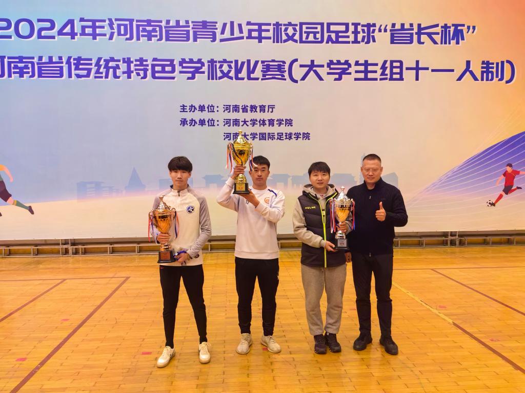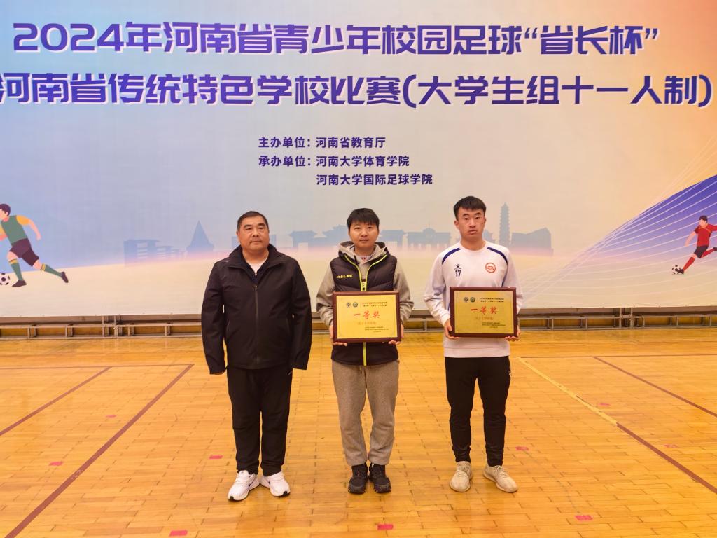近日,河南省青少年校园足球“省长杯”暨河南省传统特色学校比赛(大学组十一人制)落下帷幕。我校男子足球队凭借出色的表现荣获“一等奖”,国际教育学院崔森森、邓留洋、汽车与交通学院艾斯如拉・买买江三名学生获“优秀运动员”称号。yl6809永利官网集团王彬老师荣获“优秀教练员”称号。