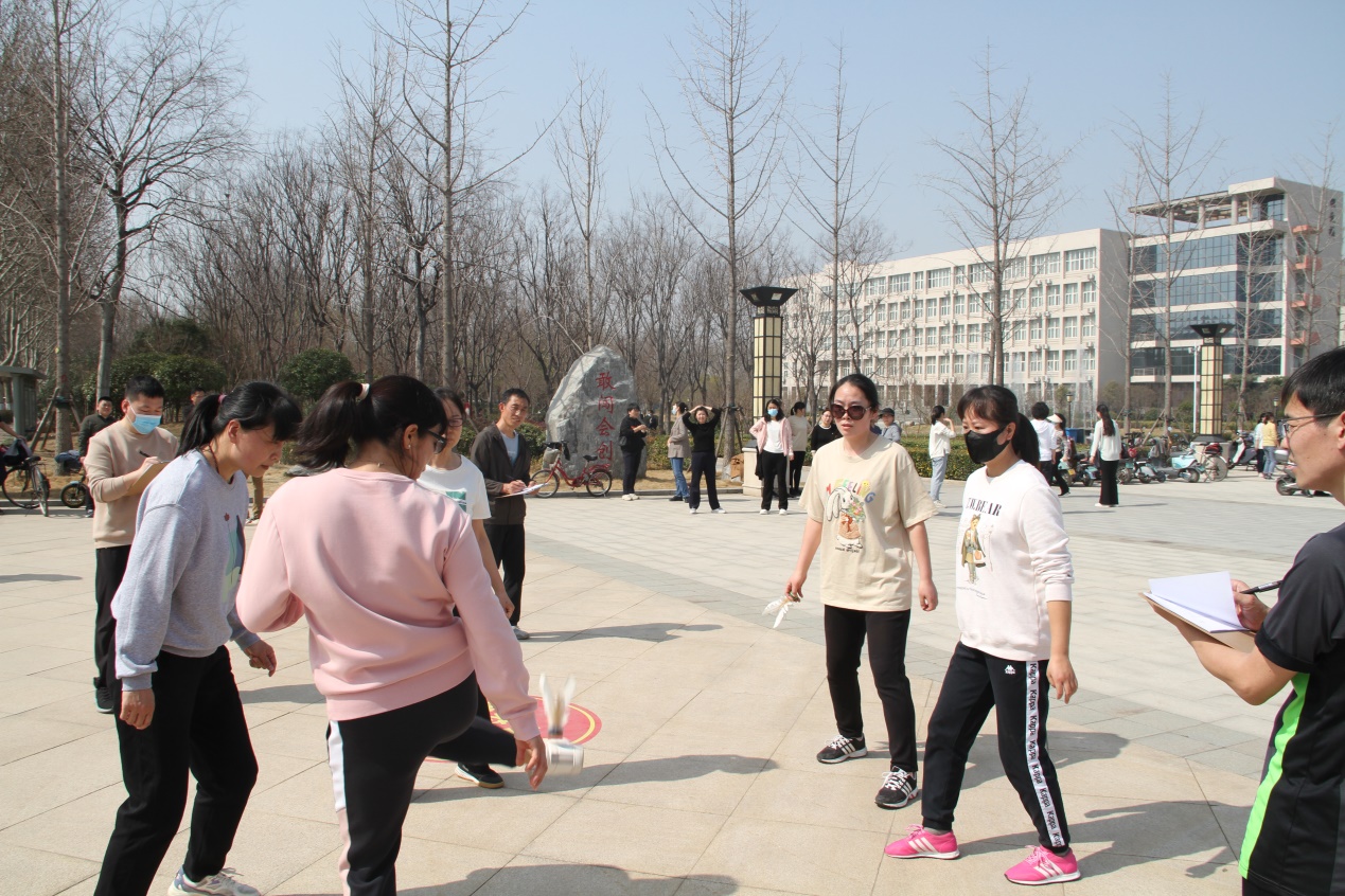 3月6日中午,为庆祝三八妇女节的到来,yl6809永利集团“迎三八”女教职工毽子围踢比赛在图书馆前明湖广场开赛,这也是毽球运动首次成为校工会组织的比赛项目。