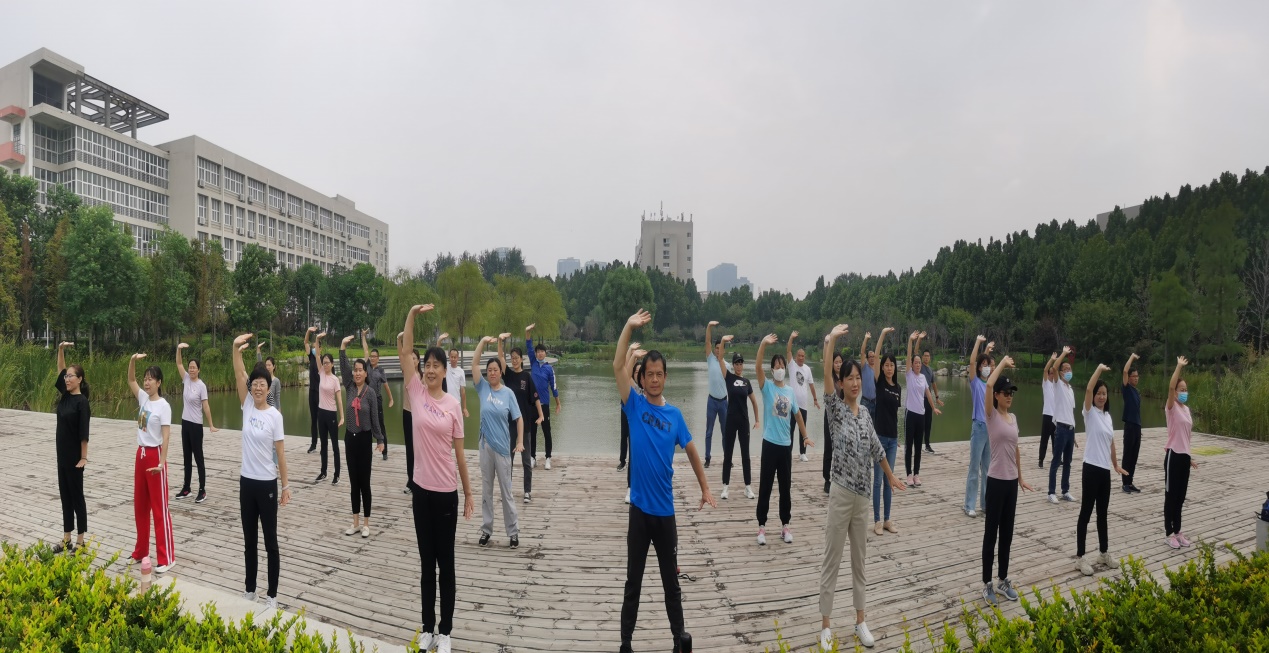 2022年9月15日,yl6809永利官网集团开展庆祝教师节八段锦健身活动,迎接党的二十大,培根铸魂育新人。