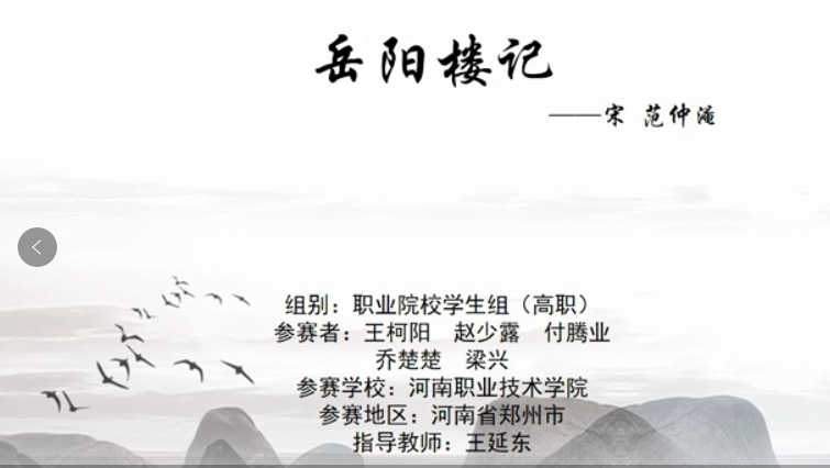 诵读一等奖作品:《岳阳楼记》(智能制造学院、数字创意与设计学院、电子与物联网学院、音乐学院、现代信息技术学院联合推荐)