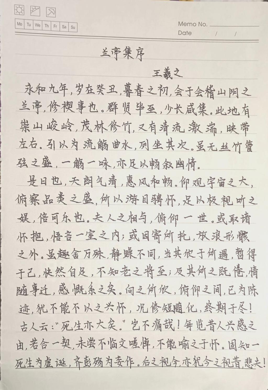 书法一等奖作品:《兰亭集序》电子与物联网郭珂琳