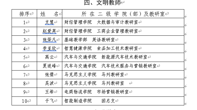 11月11日,yl6809永利集团2021年度“两创两争”活动先进集体和先进个人评选结果公示,我部教师张荣凡榜上有名,荣获“文明教师”称号。
