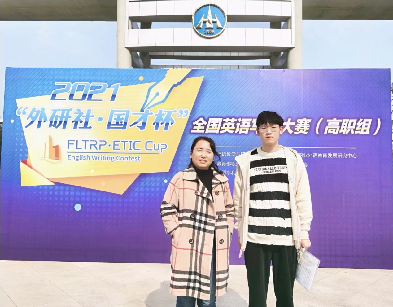 10月23日,由教育部职业院校外语类专业教学指导委员会和外研社联合主办的2020“外研社·国才杯”全国英语写作大赛(高职组)”河南赛区复赛在黄河水利职业技术学院举行。我校2名参赛学生均获佳绩:张旭同学荣获公共英语组特等奖并进入全国总决赛,吴雨欣同学荣获三等奖。
