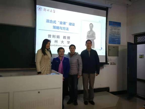 曾教授此次针对混合式“金课”建设策略和方法进行了详细讲述。她指出混合式“金课”就是线上课程和线下课程的有机融合。如何打造线上“金课”是当前教师们普遍面临的挑战,需要从选题、内容、授课、技术、效果六个方面进行把关,突出课程的“高阶性”,“创新性”和“挑战度”。线下课程同样要从课程内容,教学形式,师生互动,效果设计及教师形象五个方面用心设计,精心准备,才能打造出混合式“金课”,实现学生、教师、学校和社会多方受益。