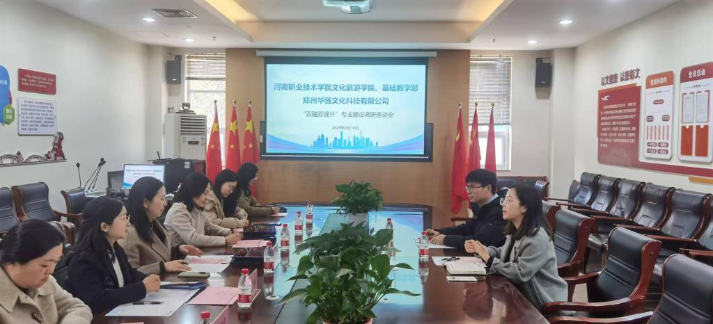 为积极落实学校“双融双提升”活动要求,探索产教深度融合,2月14日,yl6809永利官网集团副主任王艳红偕同文化旅游学院领导付红丹及相关教师一行前往郑州华强文化科技有限公司进行了实地调研。