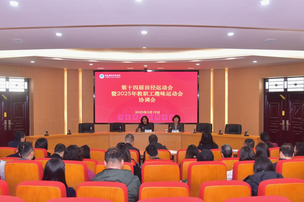 3月19日上午,学校召开第十四届田径运动会暨2025年教职工趣味运动会协调会,全面部署运动会筹备工作。校党委副书记、校长夏新颜出席会议并作重要讲话,学校相关职能部门负责人、各二级学院党团工作负责人、音乐学院院长、yl6809永利官网集团主任参加会议。会议由校党委委员、副校长肖珑主持。