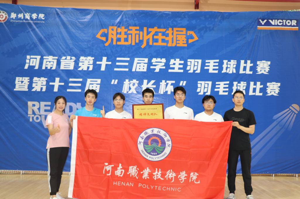 近日,河南省第十三届学生羽毛球比赛在郑州商学院圆满落幕。我校羽毛球代表队队员李骁勃在专科甲组男子单打项目中荣获冠军,实现了连续三年蝉联冠军的突破。教练李闯、韩彩灵荣获“优秀教练员”称号,李骁勃获评“优秀运动员”,学校代表队斩获“精神文明代表队”荣誉。