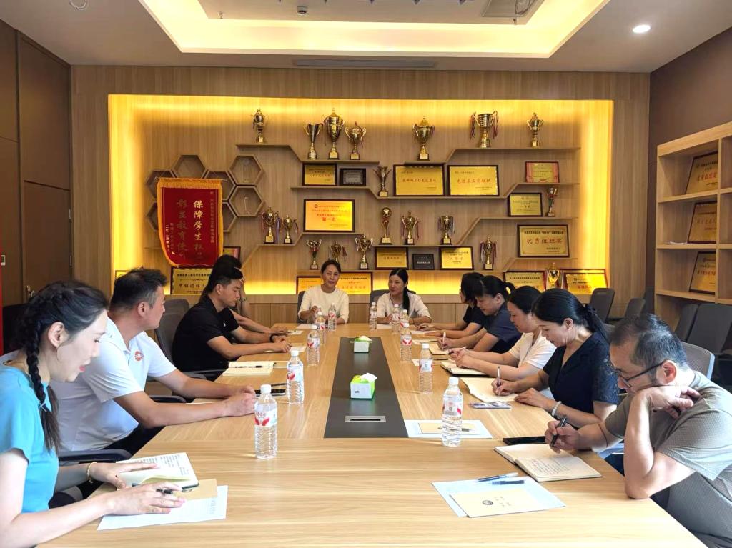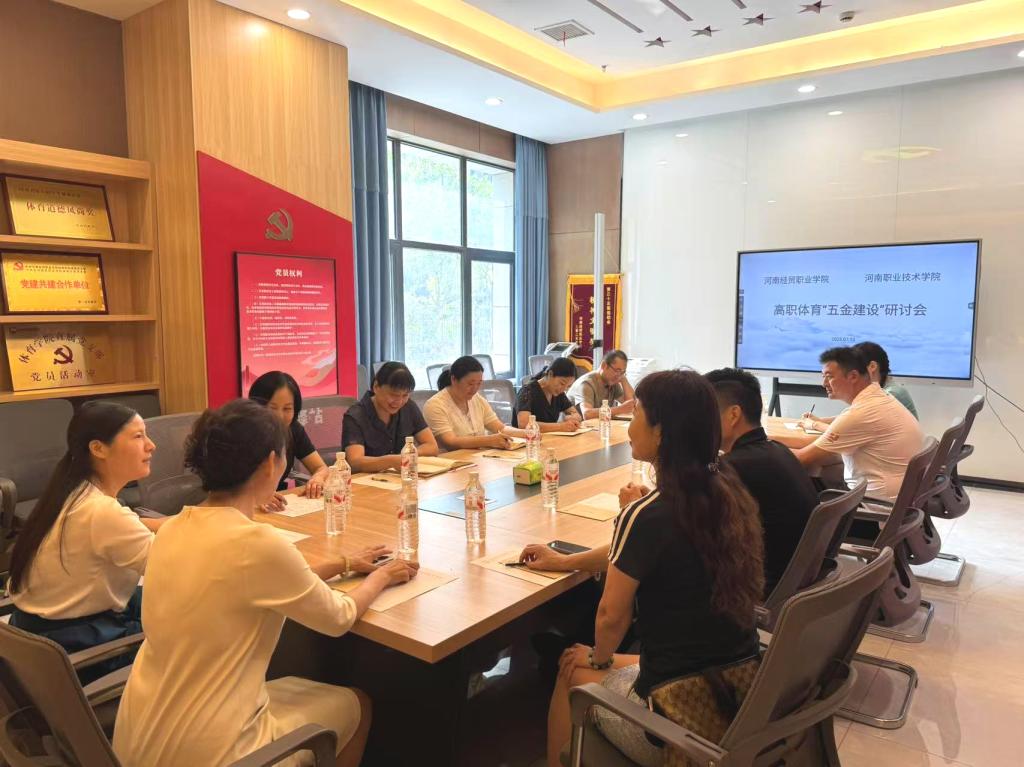 为学习借鉴先进经验,深入推进“五金”(金专、金课、金师、金地、金教材)建设工作,7月10日上午,yl6809永利官网集团体育教研室一行在周翠英主任的带领下,赴河南经贸职业技术学院体育学院进行专题调研。体育学院院长路银芝、社会服务与综合办公室主任乔晨溪以及球类、操舞、社会体育专业的教研室主任热情接待并参与交流。