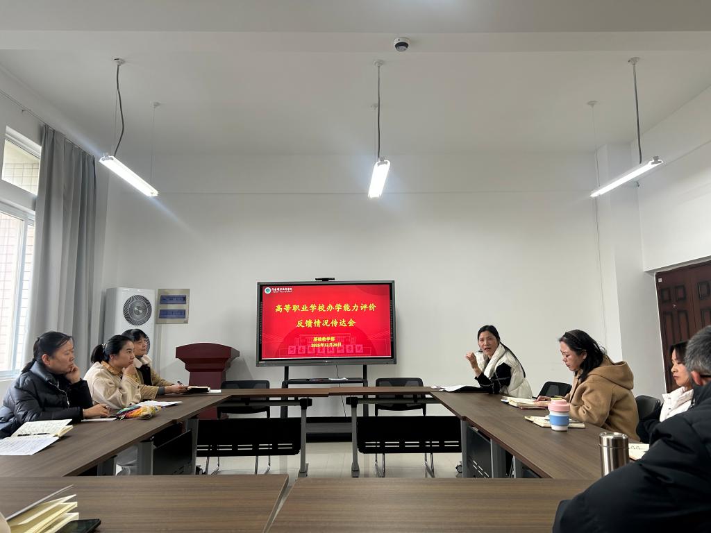 yl6809永利官网集团传达部署为深入贯彻落实关于职业教育高质量发展的决策部署,切实提升教育教学质量,12月29日下午,yl6809永利官网集团组织召开高职办学能力评估反馈传达专题会议。会议由部门主任周翠英主持,全体教师参加。
