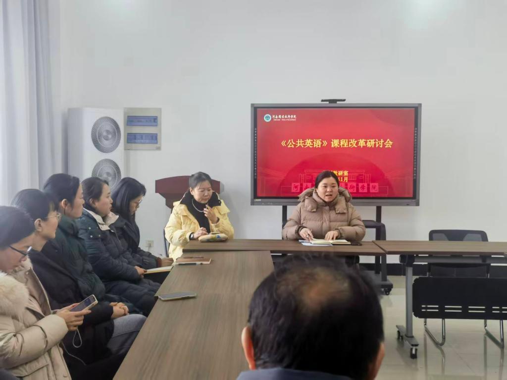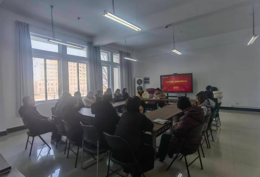 为响应教育部推动职业学校深化大学英语课程改革号召,切实推动我校《公共英语》课程改革,1月22日下午,英语教研室组织召开专题研讨会,围绕“中华优秀文化融入高职高专大学英语课程”主题开展集中学习研讨。会议由教研室主任蒋慧萍主持,教研室全体教师参加。
