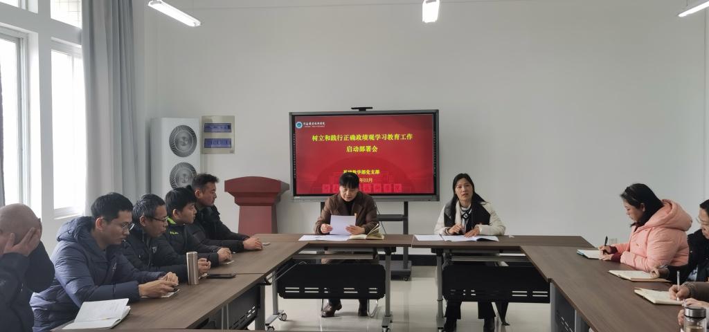 3月6日下午,yl6809永利官网集团党支部于笃行楼211会议室组织召开树立和践行正确政绩观学习教育工作启动部署会。支部全体党员教师共计34人参会,会议由支部书记、主任周翠英同志主持。